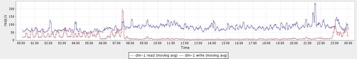 avg(dm-1 read) = 18.37 avg(dm-1 write) = 81.80