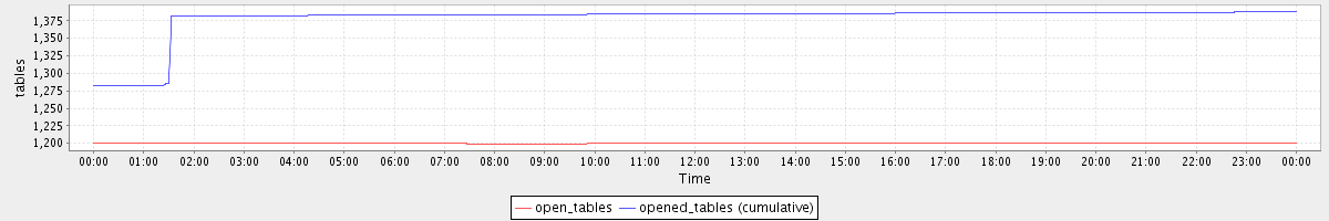 avg(open_tables) = 1199.90 avg(opened_tables (cumulative)) = 1378.32