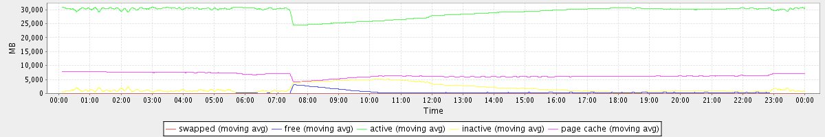 avg(swapped) = 0.23 avg(free) = 370.88 avg(active) = 29261.94 avg(inactive) = 1817.38 avg(page cache) = 6480.07