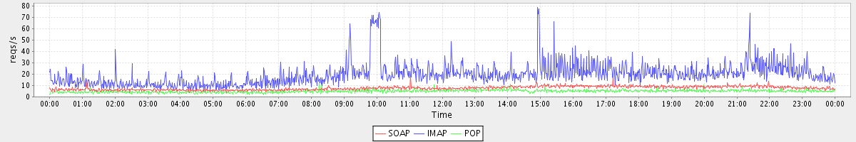 Host zm05.stanford.edu: Mailboxd: Request Rate by Client Protocol
