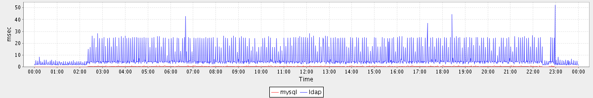 avg(mysql) = 0.19 avg(ldap) = 6.94