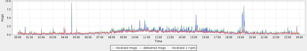 avg(received msgs) = 0.66 avg(delivered msgs) = 0.75 avg(received x rcpts) = 0.89