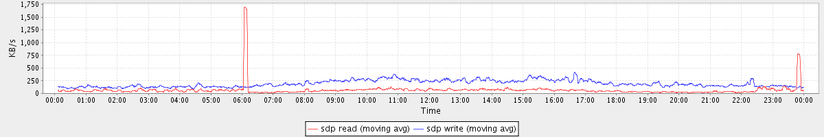 avg(sda2 read) = 0.45 avg(sda2 write) = 6.86