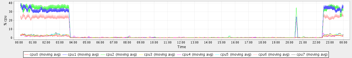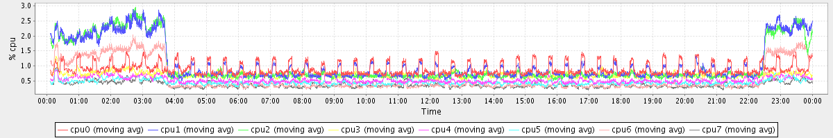 avg(cpu0) = 0.89 avg(cpu1) = 1.09 avg(cpu2) = 1.02 avg(cpu3) = 0.71 avg(cpu4) = 0.53 avg(cpu5) = 0.46 avg(cpu6) = 0.59 avg(cpu7) = 0.37