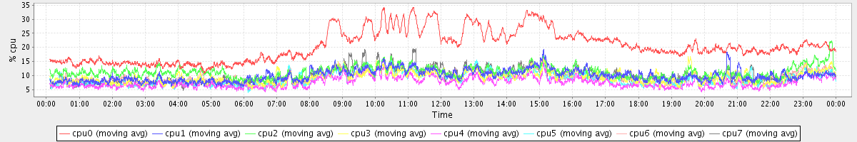 avg(cpu0) = 1.49 avg(cpu1) = 0.19 avg(cpu2) = 0.28 avg(cpu3) = 0.17 avg(cpu4) = 0.10 avg(cpu5) = 0.11 avg(cpu6) = 0.18 avg(cpu7) = 0.13