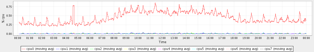 avg(cpu0) = 0.45 avg(cpu1) = 0.01 avg(cpu2) = 0.01 avg(cpu3) = 0.00 avg(cpu4) = 0.00 avg(cpu5) = 0.00 avg(cpu6) = 0.00 avg(cpu7) = 0.00
