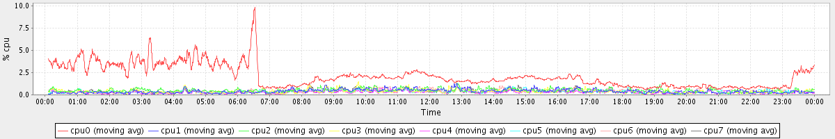 avg(cpu0) = 2.11 avg(cpu1) = 0.40 avg(cpu2) = 0.49 avg(cpu3) = 0.39 avg(cpu4) = 0.29 avg(cpu5) = 0.34 avg(cpu6) = 0.40 avg(cpu7) = 0.34
