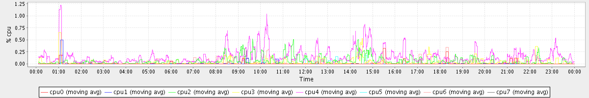 avg(cpu0) = 0.01 avg(cpu1) = 0.00 avg(cpu2) = 0.06 avg(cpu3) = 0.04 avg(cpu4) = 0.15 avg(cpu5) = 0.00 avg(cpu6) = 0.01 avg(cpu7) = 0.01