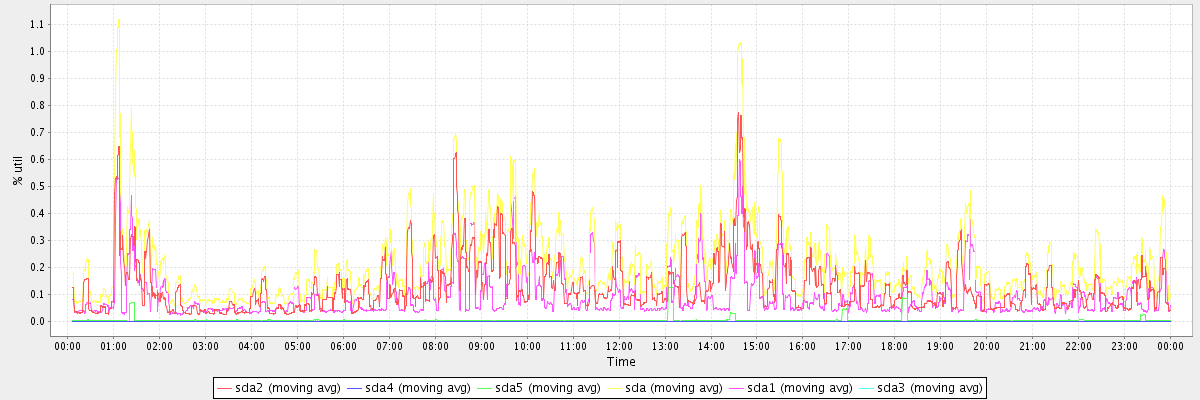 avg(sda2) = 0.13 avg(sda4) = 0.00 avg(sda5) = 0.00 avg(sda) = 0.22 avg(sda1) = 0.09 avg(sda3) = 0.00