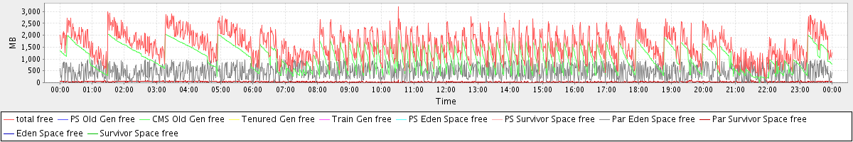 avg(total free) = 1572.66 avg(PS Old Gen free) = 0.00 avg(CMS Old Gen free) = 1059.76 avg(Tenured Gen free) = 0.00 avg(Train Gen free) = 0.00 avg(PS Eden Space free) = 0.00 avg(PS Survivor Space free) = 0.00 avg(Par Eden Space free) = 477.76 avg(Par Survivor Space free) = 35.14 avg(Eden Space free) = 0.00 avg(Survivor Space free) = 0.00