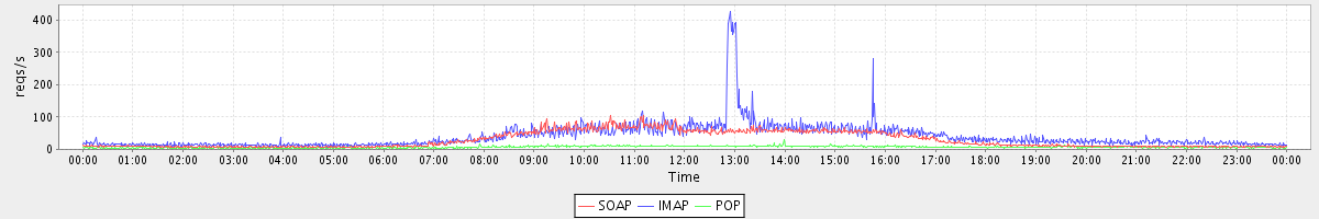 Host zm05.stanford.edu: Mailboxd: Request Rate by Client Protocol
