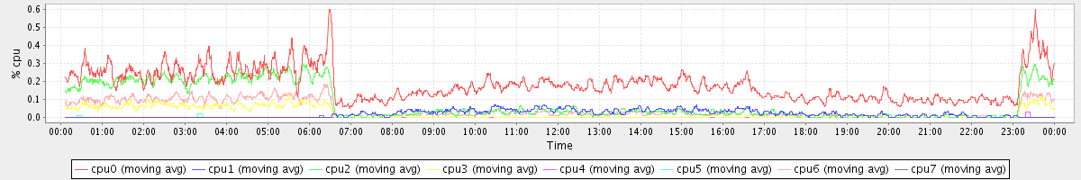 avg(cpu0) = 1.51 avg(cpu1) = 0.11 avg(cpu2) = 0.19 avg(cpu3) = 0.07 avg(cpu4) = 0.16 avg(cpu5) = 0.09 avg(cpu6) = 0.14 avg(cpu7) = 0.04