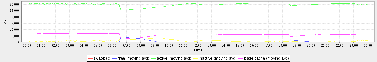 avg(swapped) = 0.00 avg(free) = 493.06 avg(active) = 29749.99 avg(inactive) = 1250.09 avg(page cache) = 5957.35