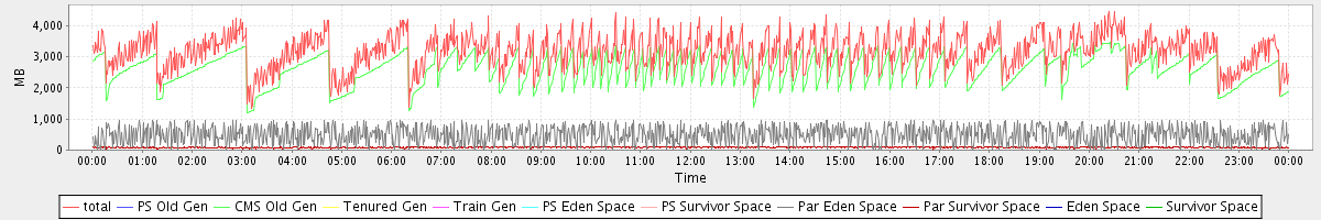 avg(total) = 3176.78 avg(PS Old Gen) = 0.00 avg(CMS Old Gen) = 2600.10 avg(Tenured Gen) = 0.00 avg(Train Gen) = 0.00 avg(PS Eden Space) = 0.00 avg(PS Survivor Space) = 0.00 avg(Par Eden Space) = 488.68 avg(Par Survivor Space) = 88.00 avg(Eden Space) = 0.00 avg(Survivor Space) = 0.00