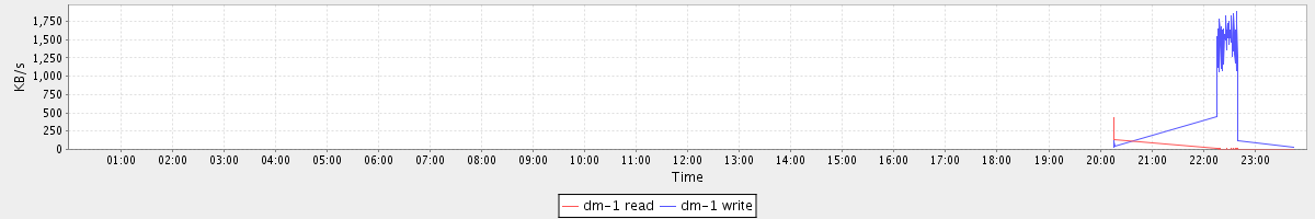 avg(dm-1 read) = 0.34 avg(dm-1 write) = 25.38