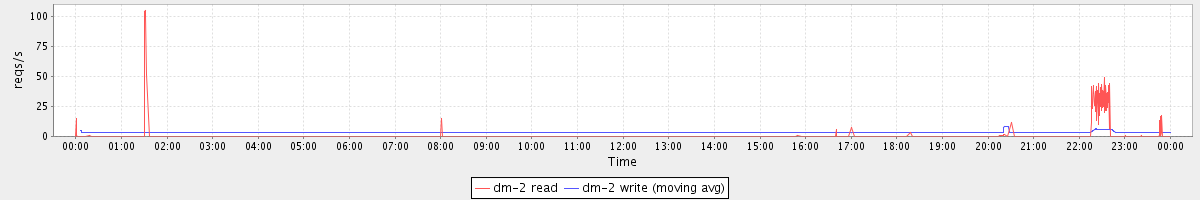 avg(dm-2 read) = 21.28 avg(dm-2 write) = 16.76