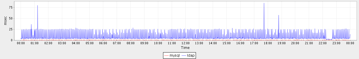 avg(mysql) = 0.23 avg(ldap) = 8.02