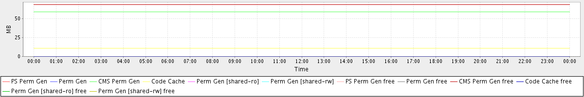 avg(PS Perm Gen) = 0.00 avg(Perm Gen) = 0.00 avg(CMS Perm Gen) = 59.23 avg(Code Cache) = 10.59 avg(Perm Gen [shared-ro]) = 0.00 avg(Perm Gen [shared-rw]) = 0.00 avg(PS Perm Gen free) = 0.00 avg(Perm Gen free) = 0.00 avg(CMS Perm Gen free) = 68.77 avg(Code Cache free) = 0.17 avg(Perm Gen [shared-ro] free) = 0.00 avg(Perm Gen [shared-rw] free) = 0.00