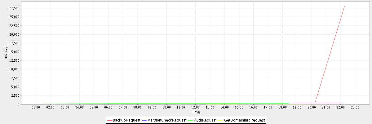 avg(BackupRequest) = 14423.50 avg(VersionCheckRequest) = 212.00 avg(AuthRequest) = 131.00 avg(GetDomainInfoRequest) = 4.04