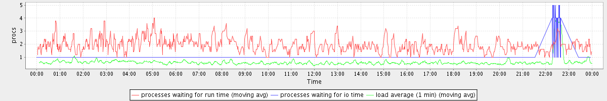 avg(processes waiting for run time) = 0.76 avg(processes waiting for io time) = 0.07 avg(load average (1 min)) = 0.63