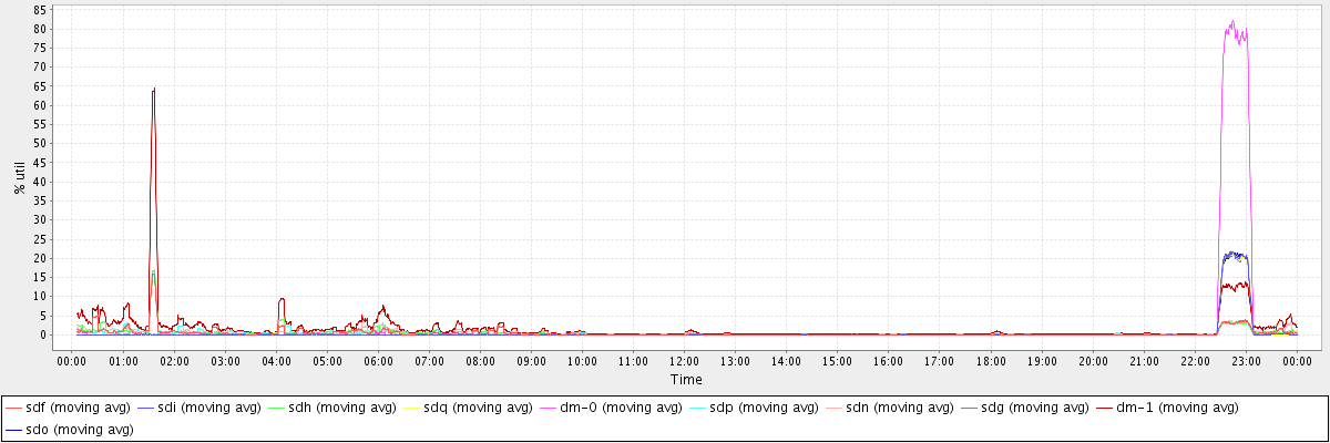 avg(dm-1 read) = 22.35 avg(dm-1 write) = 18.95