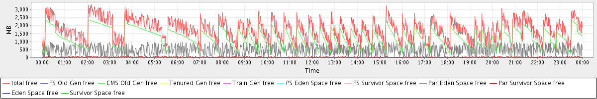 avg(total free) = 1768.27 avg(PS Old Gen free) = 0.00 avg(CMS Old Gen free) = 1242.85 avg(Tenured Gen free) = 0.00 avg(Train Gen free) = 0.00 avg(PS Eden Space free) = 0.00 avg(PS Survivor Space free) = 0.00 avg(Par Eden Space free) = 490.86 avg(Par Survivor Space free) = 34.55 avg(Eden Space free) = 0.00 avg(Survivor Space free) = 0.00