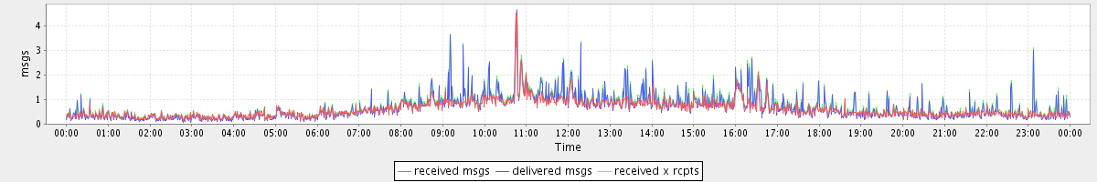 avg(received msgs) = 0.61 avg(delivered msgs) = 0.66 avg(received x rcpts) = 0.73