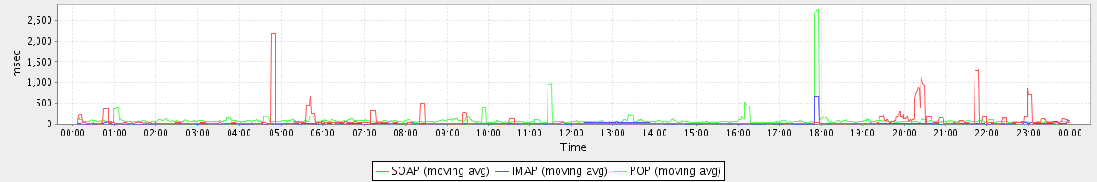 avg(IMAP) = 9.03 avg(IMAP SSL) = 1314.66 avg(POP) = 0.01 avg(POP SSL) = 179.90
