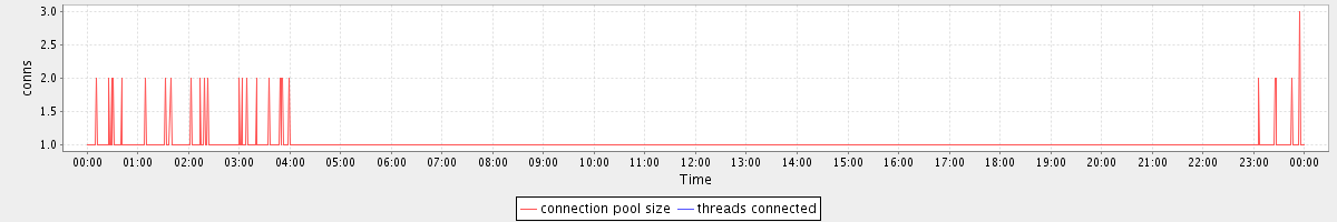 avg(connection pool size) = 0.26 avg(threads connected) = 0.00