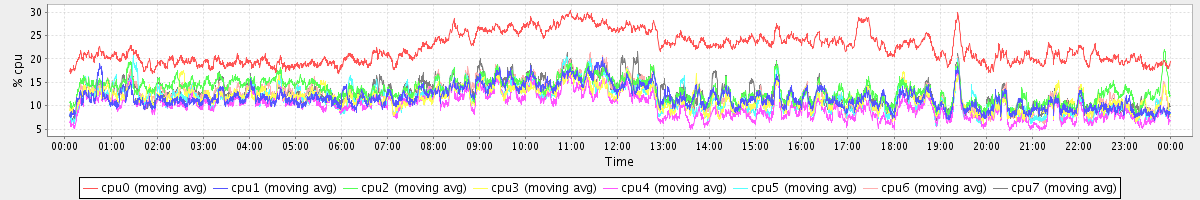 avg(cpu0) = 1.34 avg(cpu1) = 0.26 avg(cpu2) = 0.33 avg(cpu3) = 0.22 avg(cpu4) = 0.16 avg(cpu5) = 0.16 avg(cpu6) = 0.24 avg(cpu7) = 0.19