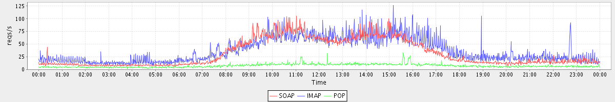 Host zm05.stanford.edu: Mailboxd: Request Rate by Client Protocol