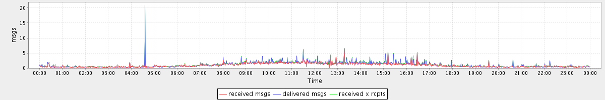 avg(received msgs) = 0.97 avg(delivered msgs) = 1.07 avg(received x rcpts) = 1.17