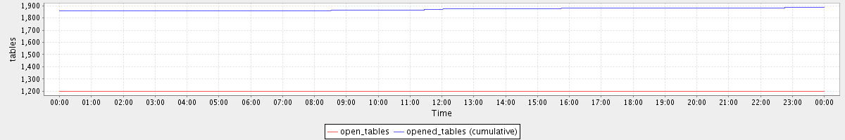 avg(open_tables) = 1199.87 avg(opened_tables (cumulative)) = 1870.75