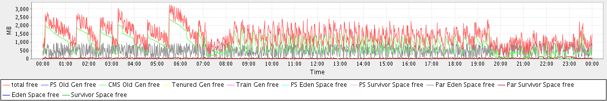 avg(total free) = 1381.37 avg(PS Old Gen free) = 0.00 avg(CMS Old Gen free) = 858.55 avg(Tenured Gen free) = 0.00 avg(Train Gen free) = 0.00 avg(PS Eden Space free) = 0.00 avg(PS Survivor Space free) = 0.00 avg(Par Eden Space free) = 487.83 avg(Par Survivor Space free) = 34.99 avg(Eden Space free) = 0.00 avg(Survivor Space free) = 0.00