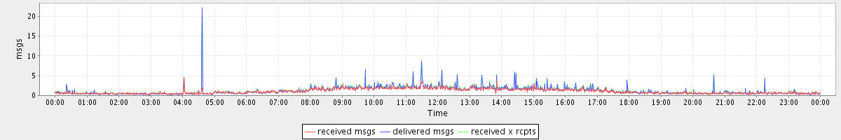 avg(received msgs) = 1.05 avg(delivered msgs) = 1.17 avg(received x rcpts) = 1.28