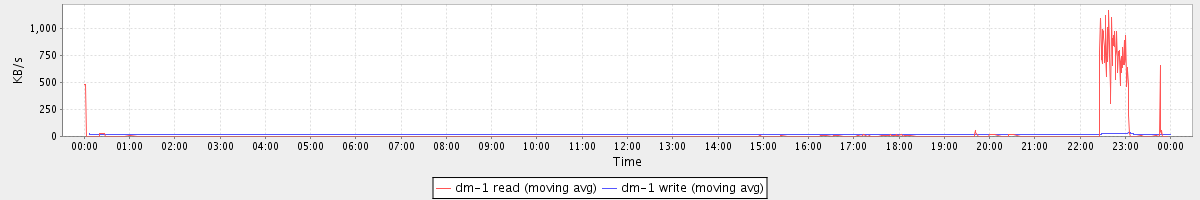 avg(dm-1 read) = 21.55 avg(dm-1 write) = 18.81