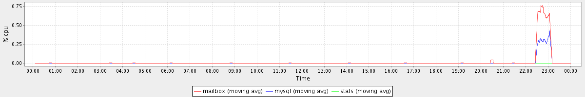 avg(mailbox) = 0.02 avg(mysql) = 0.01 avg(stats) = 0.00