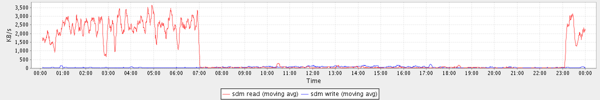 avg(sda2 read) = 0.35 avg(sda2 write) = 6.67