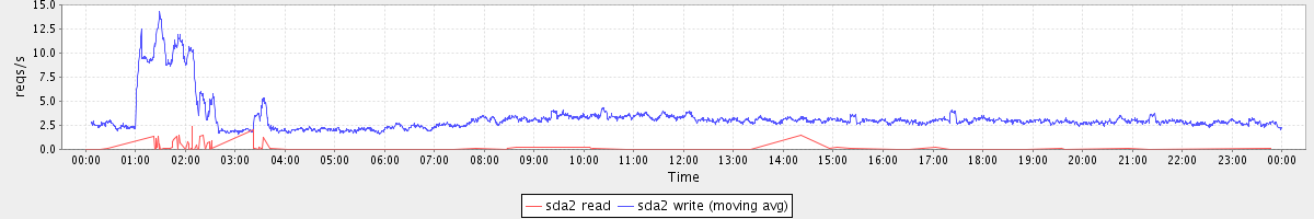 avg(sda2 read) = 0.01 avg(sda2 write) = 3.23