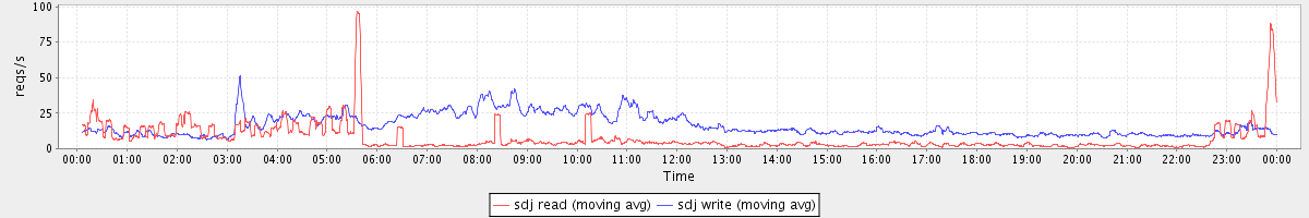 avg(sda read) = 21.36 avg(sda write) = 51.06