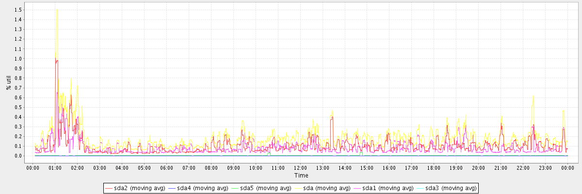 avg(sda2) = 0.11 avg(sda4) = 0.00 avg(sda5) = 0.00 avg(sda) = 0.19 avg(sda1) = 0.09 avg(sda3) = 0.00