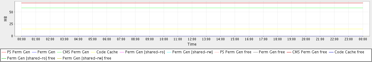 avg(PS Perm Gen) = 0.00 avg(Perm Gen) = 0.00 avg(CMS Perm Gen) = 58.88 avg(Code Cache) = 14.72 avg(Perm Gen [shared-ro]) = 0.00 avg(Perm Gen [shared-rw]) = 0.00 avg(PS Perm Gen free) = 0.00 avg(Perm Gen free) = 0.00 avg(CMS Perm Gen free) = 69.12 avg(Code Cache free) = 0.22 avg(Perm Gen [shared-ro] free) = 0.00 avg(Perm Gen [shared-rw] free) = 0.00