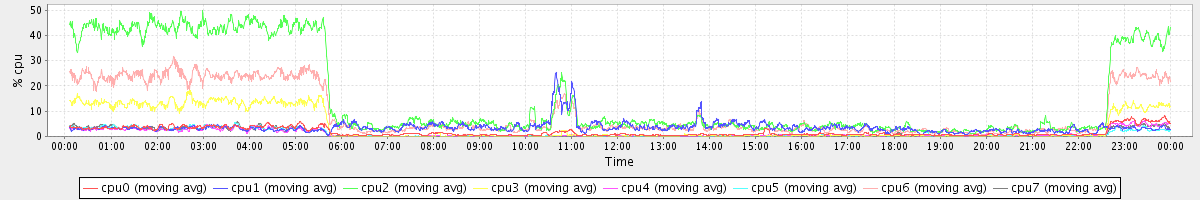 avg(cpu0) = 1.14 avg(cpu1) = 0.13 avg(cpu2) = 0.22 avg(cpu3) = 0.12 avg(cpu4) = 0.12 avg(cpu5) = 0.09 avg(cpu6) = 0.14 avg(cpu7) = 0.07
