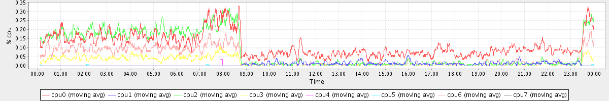 avg(cpu0) = 0.11 avg(cpu1) = 0.01 avg(cpu2) = 0.08 avg(cpu3) = 0.02 avg(cpu4) = 0.00 avg(cpu5) = 0.00 avg(cpu6) = 0.05 avg(cpu7) = 0.00