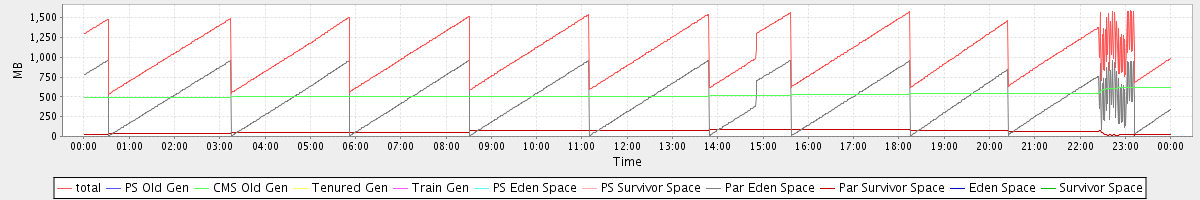 avg(total) = 1052.60 avg(PS Old Gen) = 0.00 avg(CMS Old Gen) = 521.17 avg(Tenured Gen) = 0.00 avg(Train Gen) = 0.00 avg(PS Eden Space) = 0.00 avg(PS Survivor Space) = 0.00 avg(Par Eden Space) = 469.20 avg(Par Survivor Space) = 62.23 avg(Eden Space) = 0.00 avg(Survivor Space) = 0.00