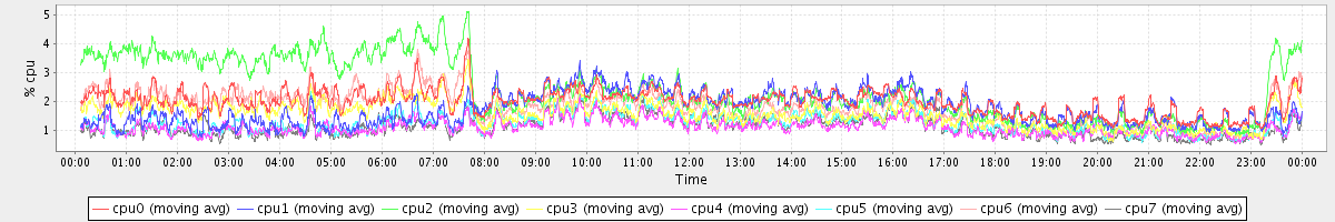 avg(cpu0) = 2.00 avg(cpu1) = 1.73 avg(cpu2) = 2.46 avg(cpu3) = 1.57 avg(cpu4) = 1.10 avg(cpu5) = 1.24 avg(cpu6) = 1.81 avg(cpu7) = 1.12