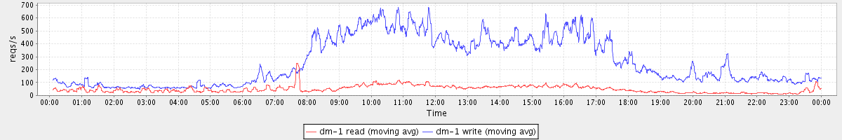 avg(dm-0 read) = 3610.15 avg(dm-0 write) = 375.20