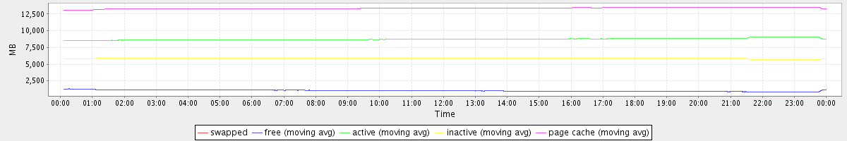 avg(swapped) = 0.00 avg(free) = 1036.30 avg(active) = 8748.49 avg(inactive) = 5868.97 avg(page cache) = 13371.60