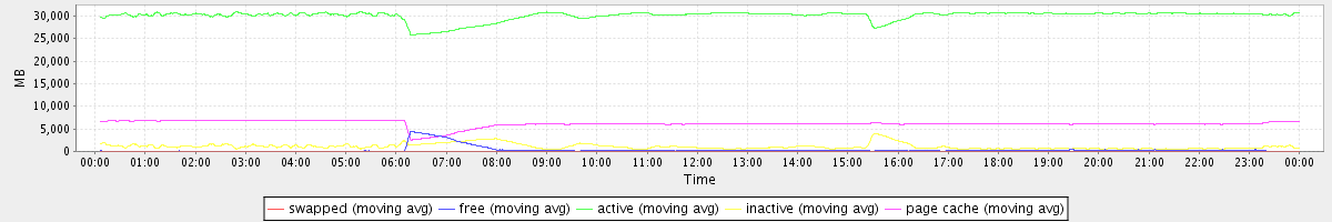avg(swapped) = 0.23 avg(free) = 323.12 avg(active) = 30058.08 avg(inactive) = 1096.51 avg(page cache) = 6145.70