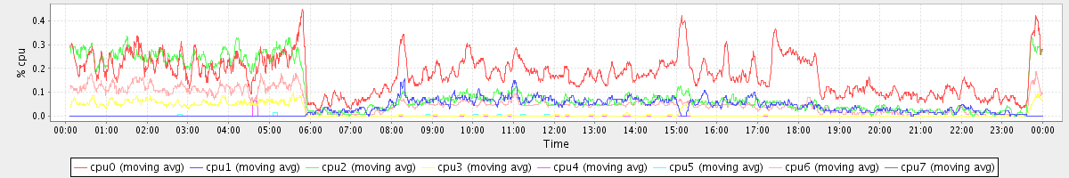 avg(cpu0) = 0.17 avg(cpu1) = 0.03 avg(cpu2) = 0.10 avg(cpu3) = 0.02 avg(cpu4) = 0.00 avg(cpu5) = 0.00 avg(cpu6) = 0.06 avg(cpu7) = 0.00
